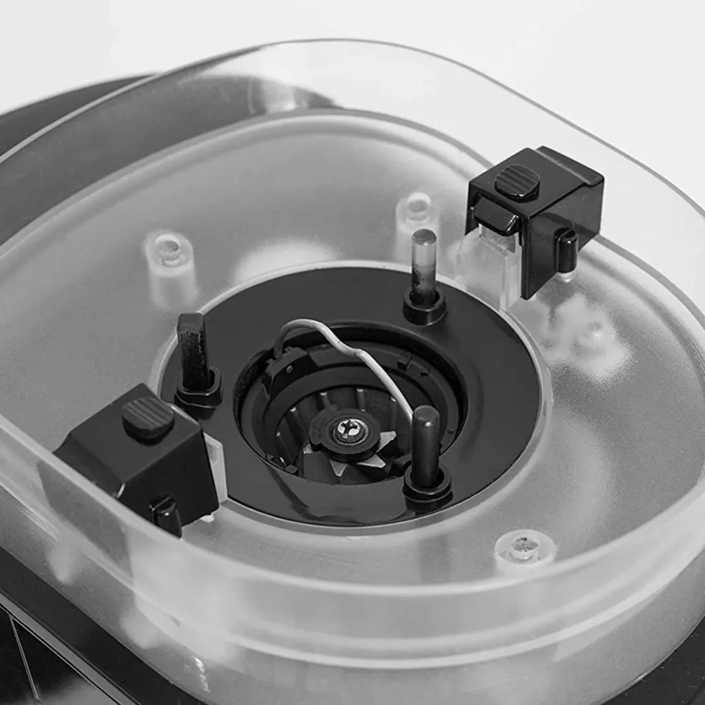 - Vertikale Kaffeezufuhr – verhindert Rückstände des Kaffeepulvers im Mahlwerk