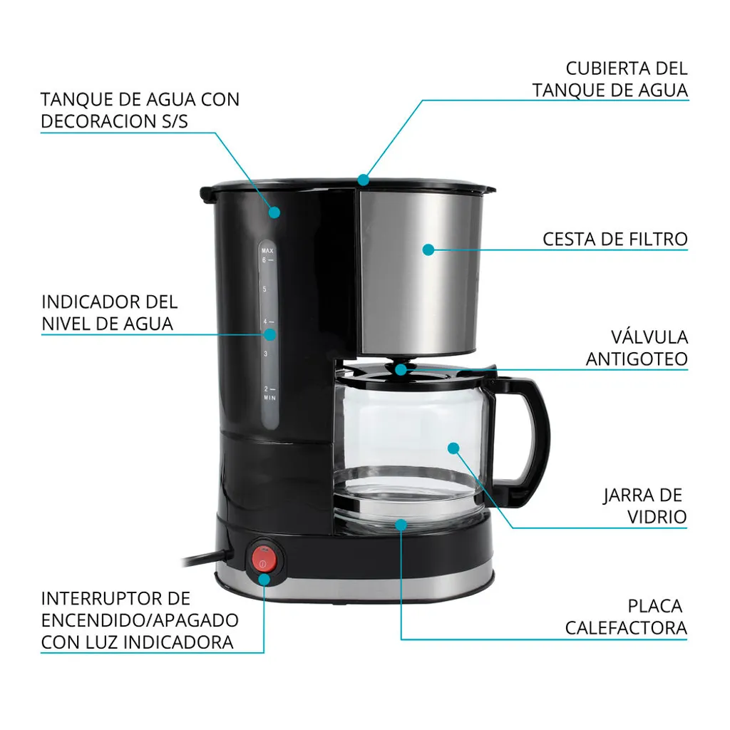 Filterkaffeemaschine Glaskanne Kunststoff TM Electron 06 L 6 Tassen