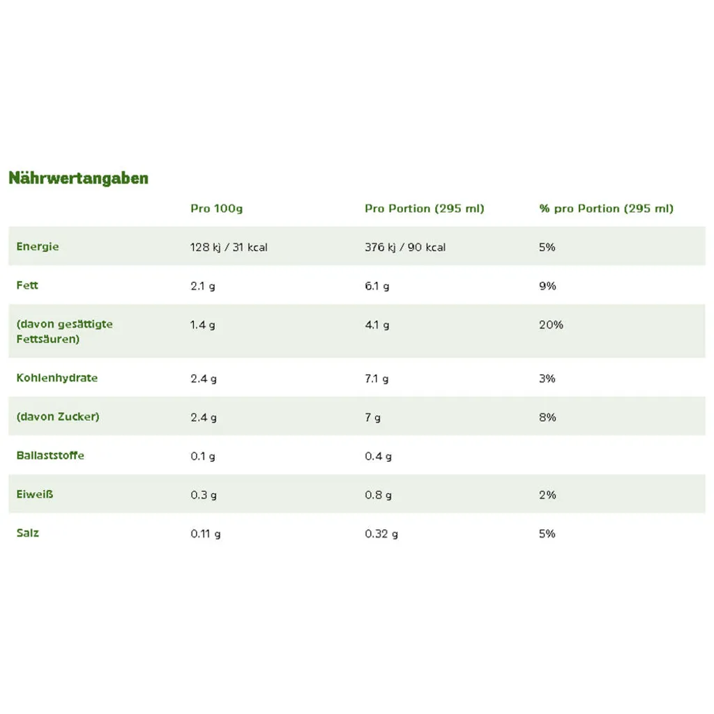 - Zutaten: Sahne (aus MILCH) (46%), gemahlener Röstkaffee (21%), Zucker (20%), Milchproteine, Wasser, Salz, Milchmineralien, Verdickungsmittel (E414), Säureregulator (E331)