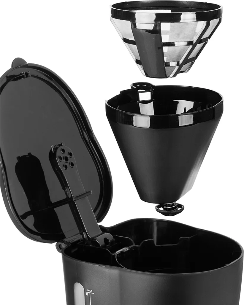 Die Kaffeemaschine hat eine Glaskanne mit 0,6 Liter Fassungsvermögen, so dass Sie bis zu 6 Tassen Kaffee gleichzeitig zubereiten können. Die Warmhaltefunktion sorgt dafür, dass der Kaffee so lange heiß bleibt, bis Sie die zweite Tasse servieren. Der Kaffeeautomat schaltet sich nach 40 Minuten automatisch aus, so dass Sie Strom sparen und sich keine Sorgen machen müssen, wenn Sie morgens in Eile das Haus verlassen.