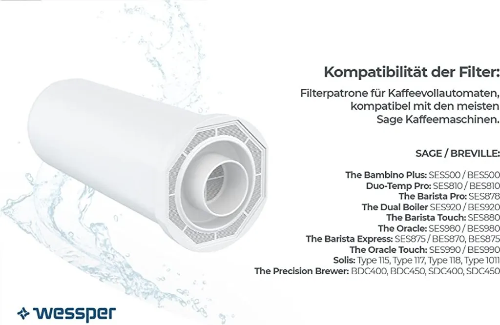 4 x WESSPER AQUASAGO FILTER FÜR SAGE EXPRESSOR – ERSATZ SES008 BES008